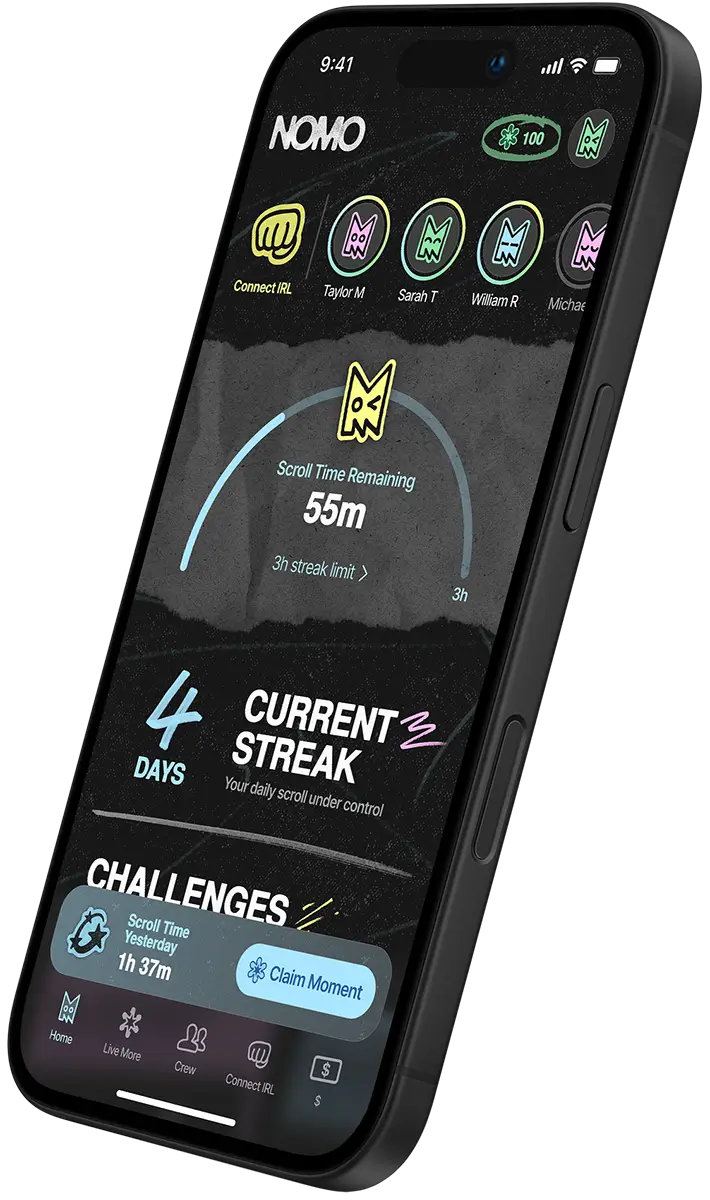 NOMO is an app that helps people scroll less and build a better relationship with social media without banning your social apps.